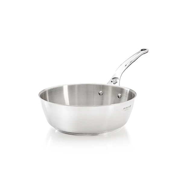 La gamme Milady proposée par De Buyer se compose de produits de cuisson de qualité professionnelle en acier inoxydable avec finition soignée brillante. La sauteuse de 24 cm possède un fond magnétique assurant une diffusion parfaite de la chaleur, et cela sur tous types de cuisinières. Cette sauteuse robuste en acier inoxydable allie ergonomie, solidité et esthétisme pour vous offrir du matériel de qualité qui s’intègre bien dans vos cuisines et vous donne envie de cuisiner. En prime, cette sauteuse dispose d’une nouvelle poignée rivetée en fonte d’inox solidement rivetée.